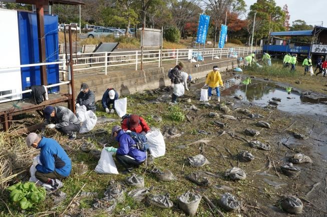 実施場所:手賀沼(西沼)北岸参加者:参加5団体から48名