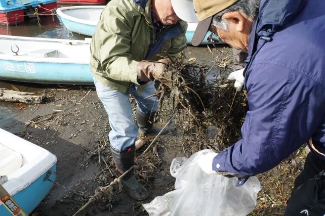 その他の参加者は、我孫子市の「ふれあい清掃」のグループとともに道路沿い、手賀大橋までの遊歩道沿いを清掃した。