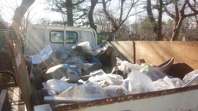 ゴミ(トン) 約0.4トン (青袋40袋 黄袋28袋 タイヤ・パソコン・風呂蓋・もんどり他)