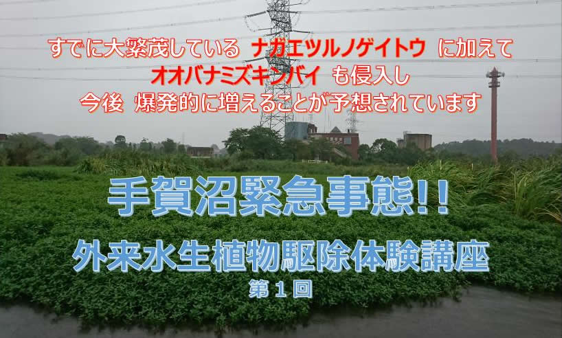 手賀沼では、外来水生植物の繁茂によるボートの運行阻害や排水機場での被害も起こり、大きな脅威となっています。外来水生植物の実態調査や駆除活動を行うための知識を学び、活動を進めます。
