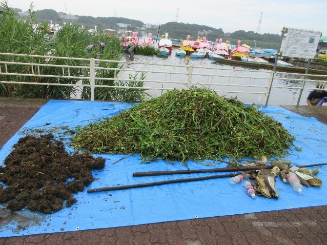 前回6月22日の処分量が920㎏でしたから、今回の230㎏はおよそ4分の1の量でしょうか。2ヶ月でそれだけ生えてきたということです。やはり、手ごわい相手です。取り敢えず、この場所だけでも殲滅とまではいかなくても、ボート屋さんたちが運航に困らないようにしていきたいです。