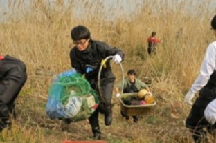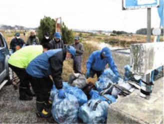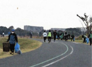 1. 小寒い曇りのもと、ボランティアが協力して楽しくゴミ拾集できました。
