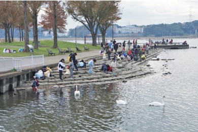 ふれあい護岸 ボーイスカウト(白鳥が見ている)