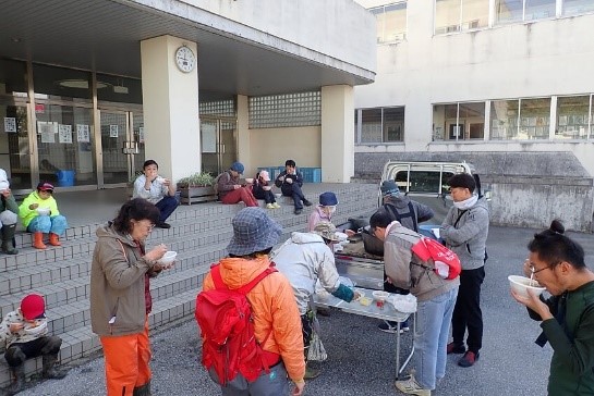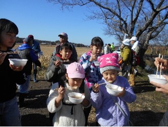 終了後は、集合場所の印西中学校に戻り温かい豚汁に舌鼓
