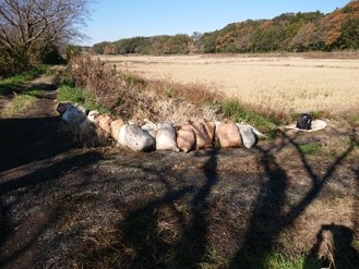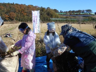 作業終了後は、今井三号橋に移動し、豚汁に舌鼓を打ち、恒例の温かいばらっぱまんじゅうに癒されました。しろい環境塾からは、来年は事前に法面を草刈し、引き上げ箇所を増やしましょうと、やる気満々の感想が寄せられました。