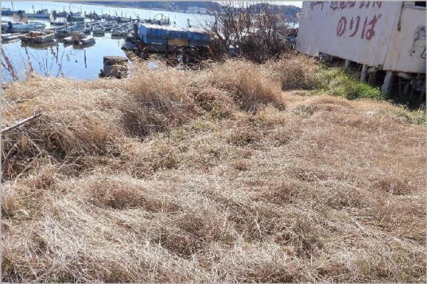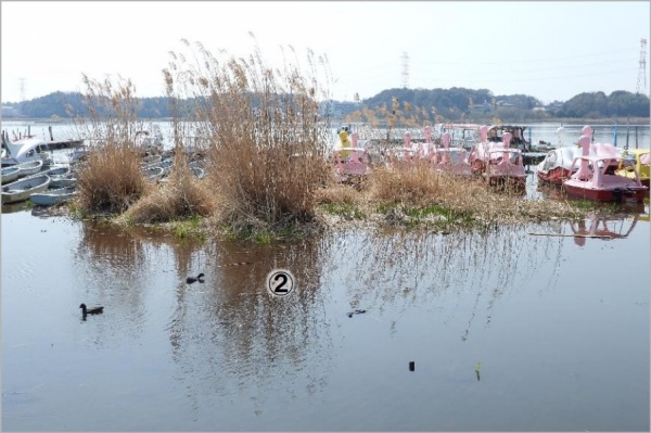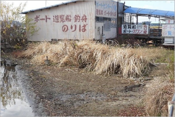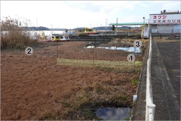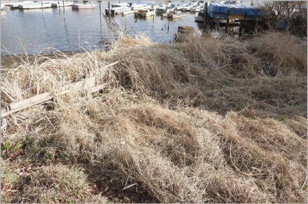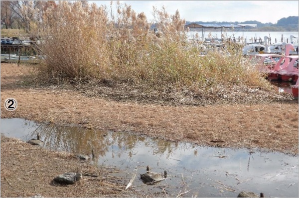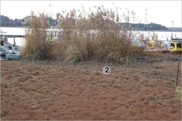 地点②:マコモとヨシは枯れていた。マコモの前のナガエは除去されていた。