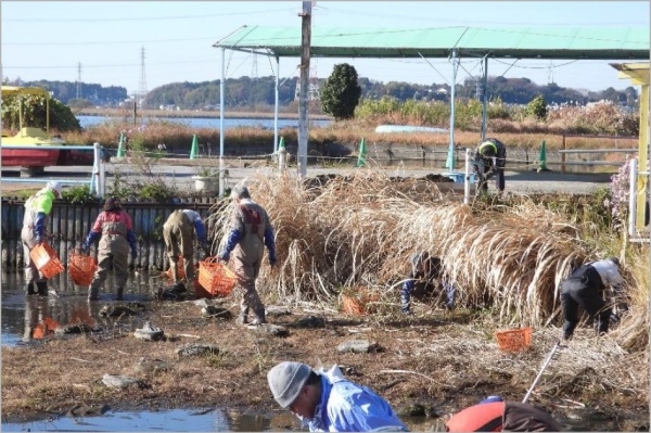 【参考写真】 2025年12月7日の手賀沼統一クリーンディ(手賀沼ふれあい清掃)の作業風景