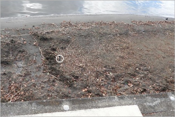 地点①のネット前(東側)でナガエ・オオバナはなかった。枯れ葉が護岸に打ち寄せられていた。