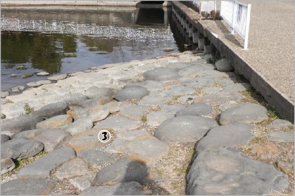 地点③奥のマコモは枯れ始まっていた。マコモ前の護岸よりのナガエは、繁茂していた。