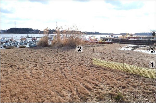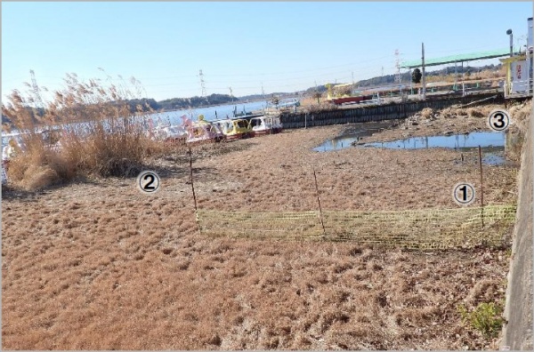 地点①と地点③の中間地点のイグサ周辺はナガエが繁茂していた場所であったが、12月の除去以降ナガエは見当たらなくなった。