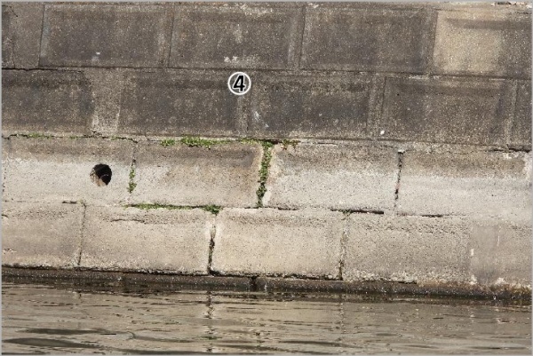 前月まで水路の出口両岸に繁茂していた不明の水草(オオバナ?)は除去されていた。