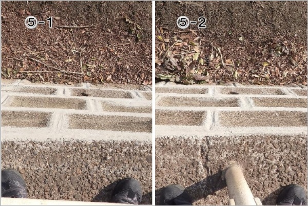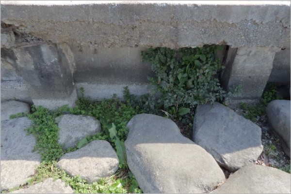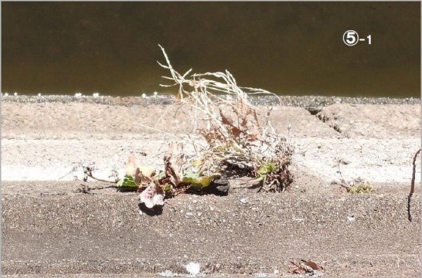 地点①のネット前(東側)の護岸脇の草に隠れていたオオバナは除去作業によってなくなったままだった。除去した後が残っていた。
