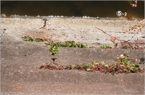 今までコンクリートの割れ目にナガエが繁茂していたが、刈り取られたようになくなっていた。