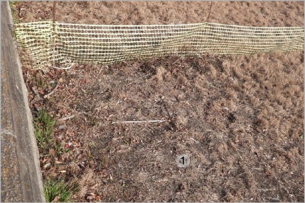 地点① ネットの西側の草は黄土色に変色、除去されてオオバナは見られなかった。