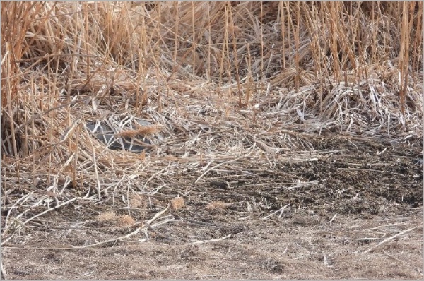 観察場所は水位が下り、枯れた草が干潟一面に残っていた。