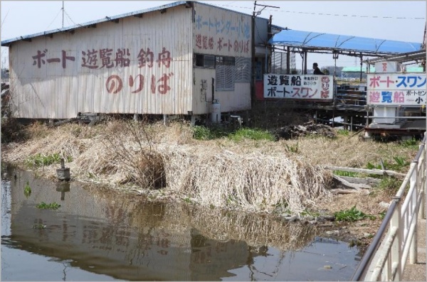 ボート乗り場付近の建物の前面に草が生えていたが、ナガエ・オオバナは無かった。