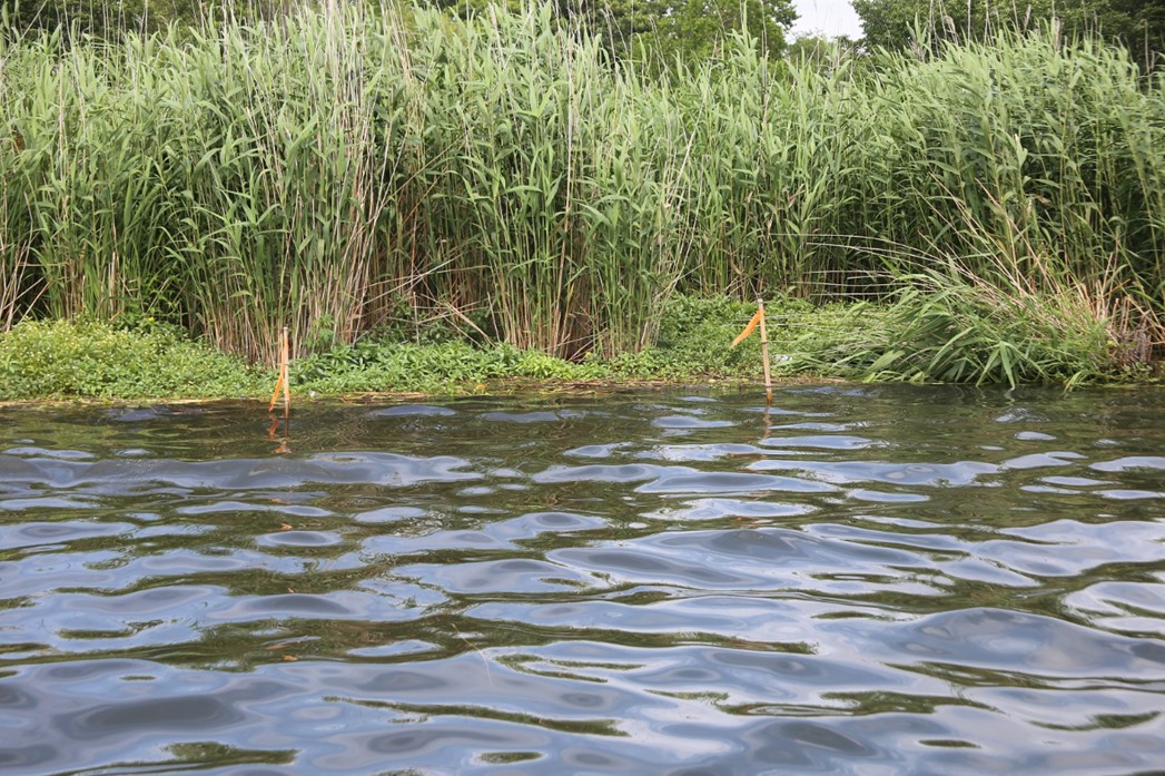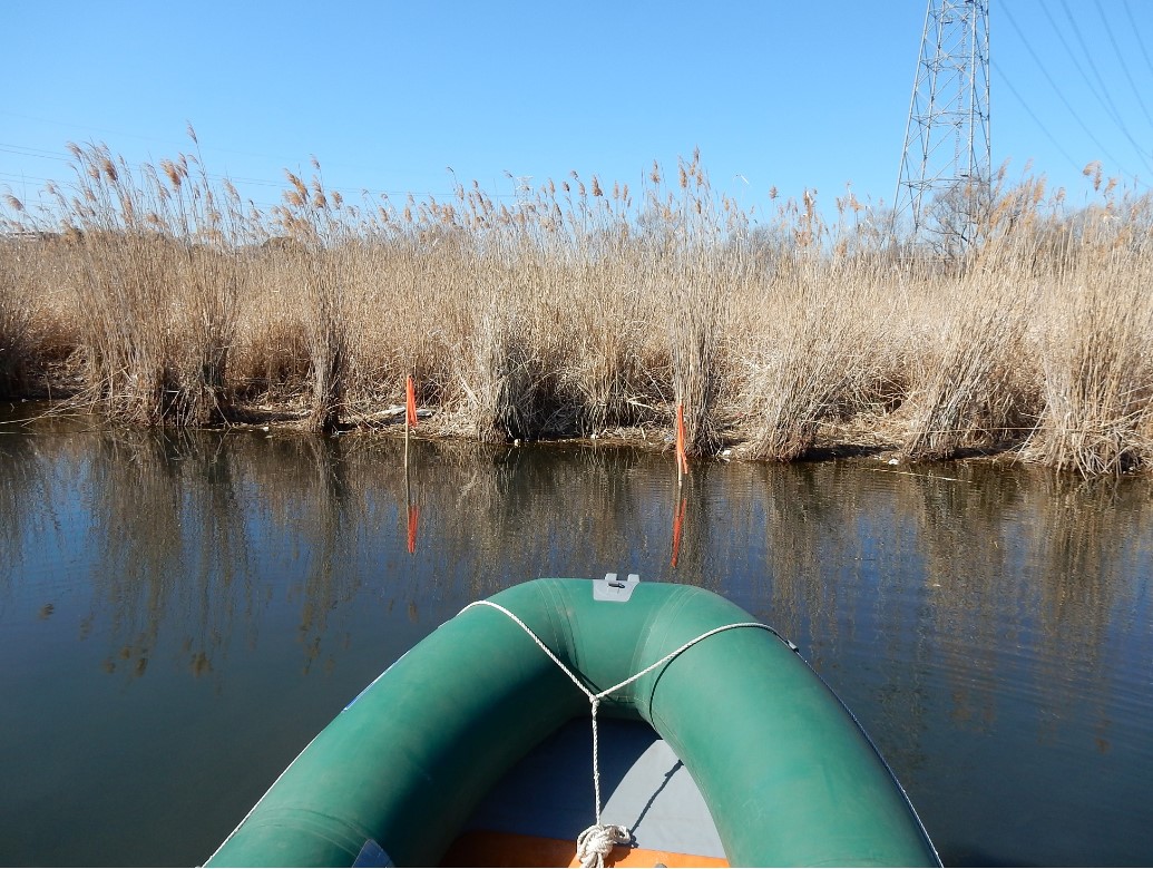 霞ヶ浦の外来水生植物の繁茂状況と防除について、小幡さんのご案内で「霞ヶ浦田村・沖宿・戸崎地区自然再生事業」を視察しました。