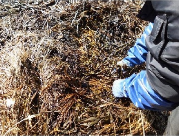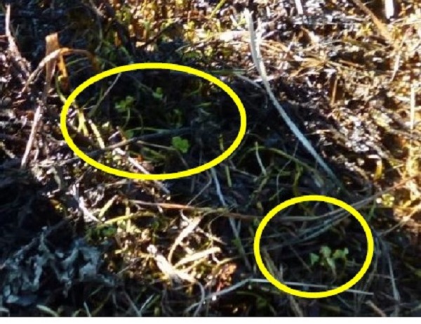 ナガエ、オオバナも他の植物も、あたり一面が薄茶色に枯れてい ましまし たが (①) 、表面の枯れ