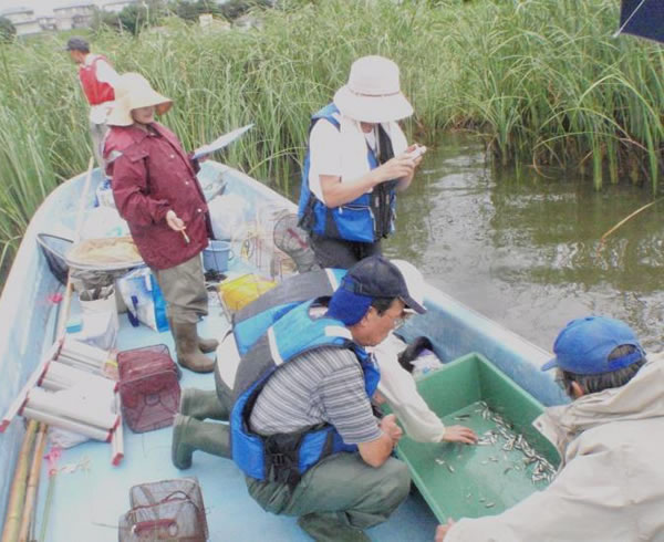 継続調査を実施し、手賀沼流域フォーラム企画で実施している「漁師さんの獲物をみせてもらう」企画結果とも合わせて魚類相の変化を記録していきます。